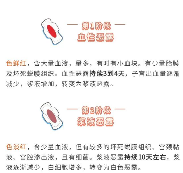 无论是顺产还是剖宫产,新妈妈在分娩后的6周里,残存在子宫里的子宫内膜、血液、宫颈分泌物等组织会逐渐脱落排出,出现阴道出血的情况,这是正常的生理现象,医学上称为产后恶露。