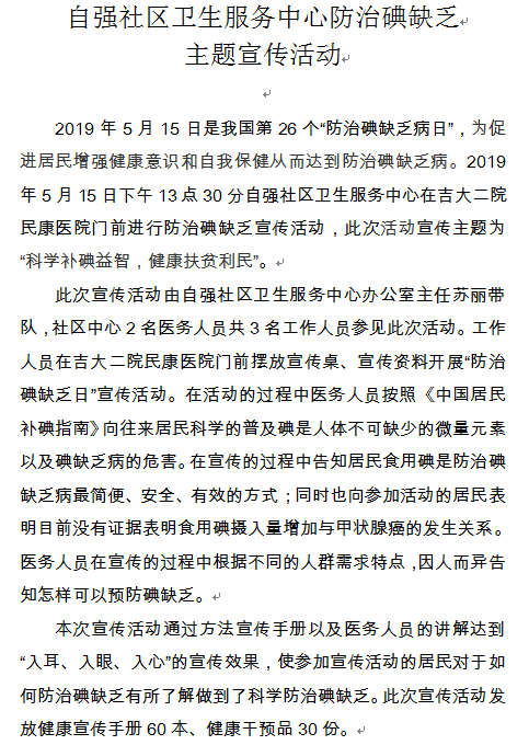 自强社区卫生服务中心防治碘缺乏 主题宣传活动
