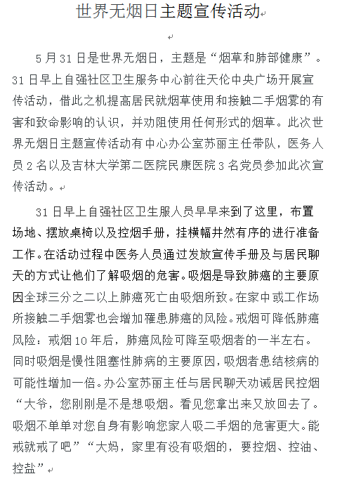 世界无烟日主题宣传活动