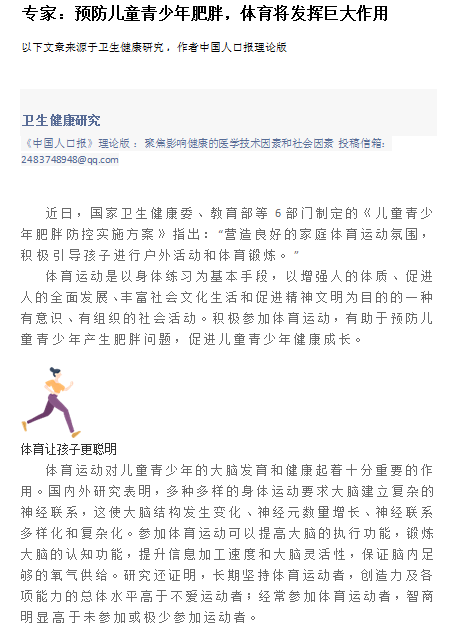 专家:预防儿童青少年肥胖,体育将发挥巨大作用