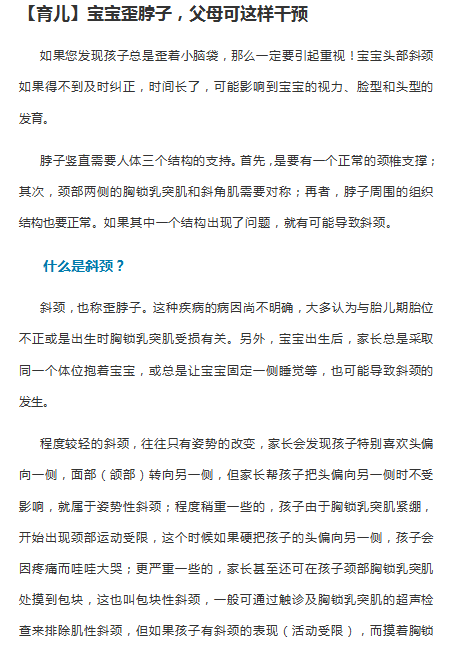 【育儿】宝宝歪脖子,父母可这样干预
