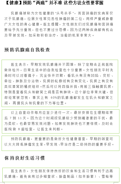 【健康】预防“两癌”并不难 这些方法女性要掌握