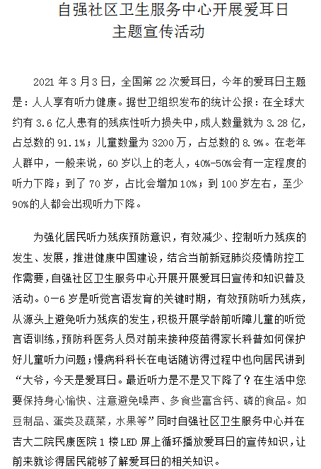 自强社区卫生服务中心开展爱耳日 主题宣传活动