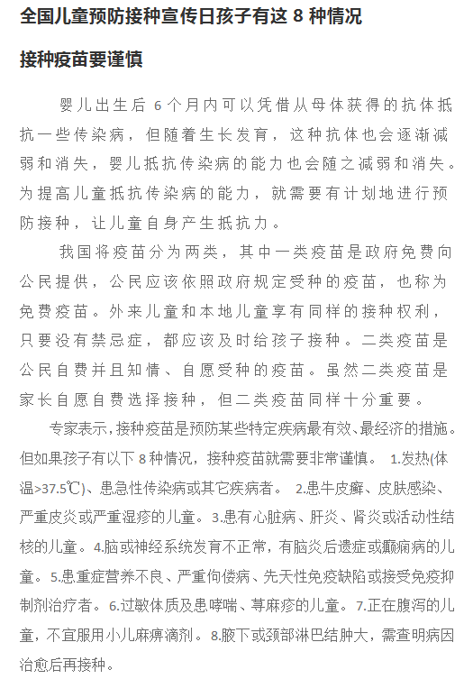 全国儿童预防接种宣传日孩子有这8种情况 接种疫苗要谨慎
