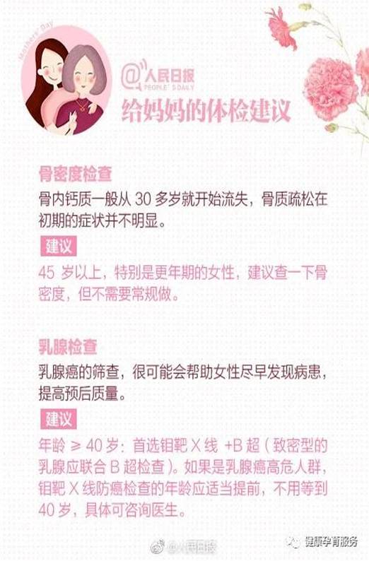 请为妈妈转发收藏这份体检建议+健康指南!健康是送给她的最好礼物