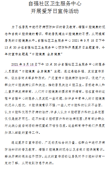 自强社区卫生服务中心 开展爱牙日宣传活动