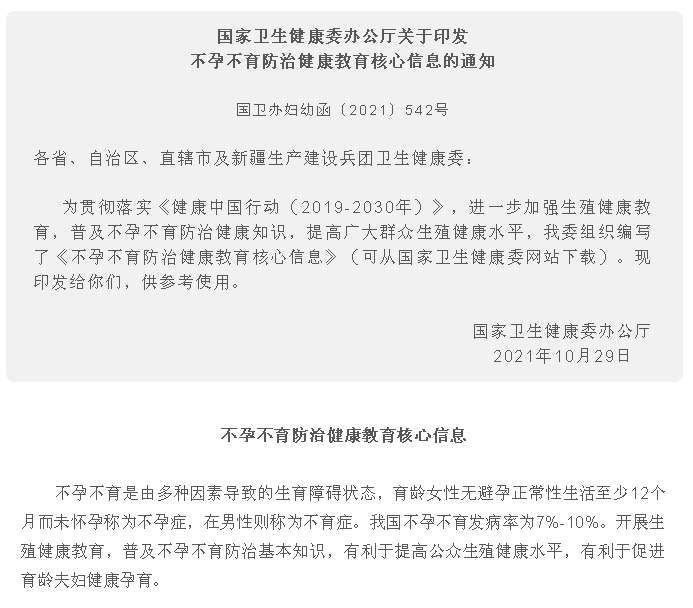 【关注】国家卫生健康委发布《不孕不育防治健康教育核心信息》