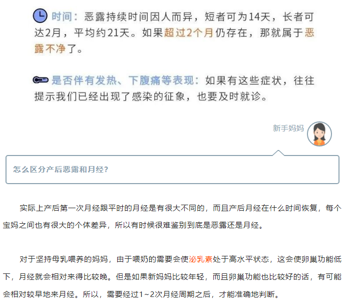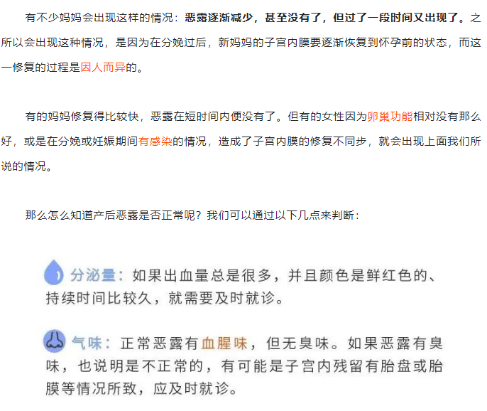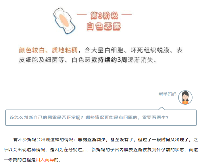 无论是顺产还是剖宫产,新妈妈在分娩后的6周里,残存在子宫里的子宫内膜、血液、宫颈分泌物等组织会逐渐脱落排出,出现阴道出血的情况,这是正常的生理现象,医学上称为产后恶露。