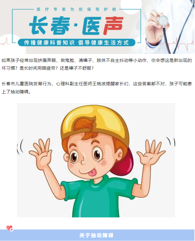 长春医声 | 孩子频繁皱眉、耸肩、扭脖子?警惕是……