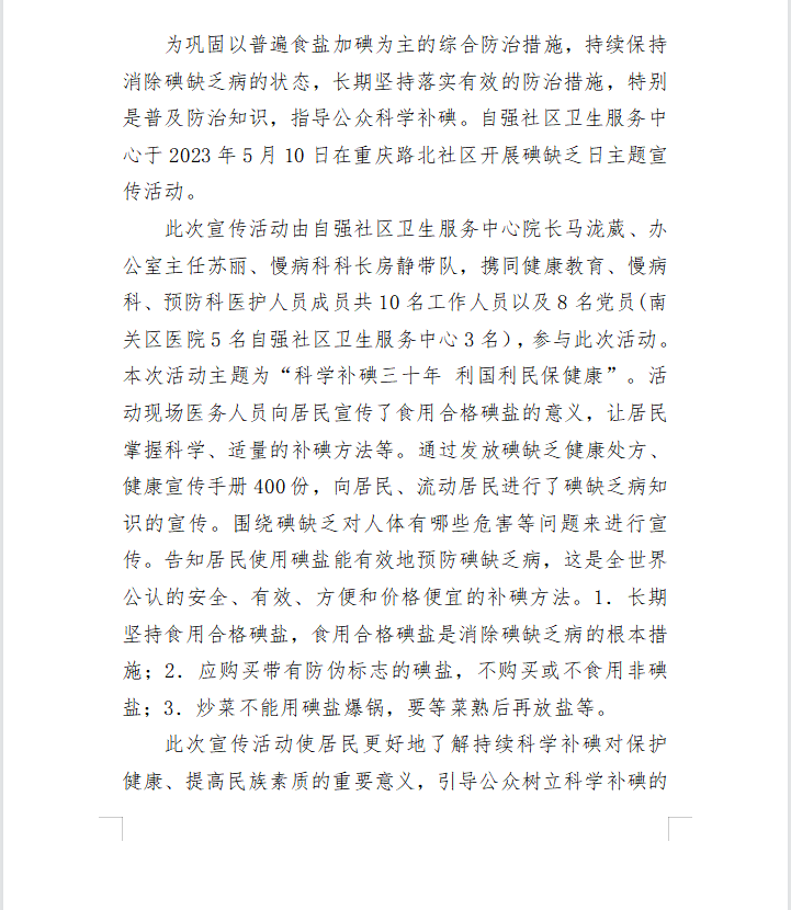 自强社区卫生服务中心开展 碘缺乏日宣传活动